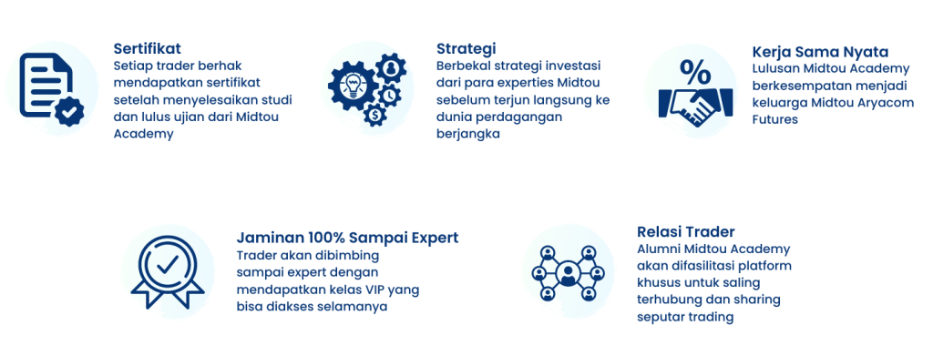 Dilengkapi dengan jaminan keahlian 100% dibimbing sampai expert dan akses akademi selamanya.Jangan ragu investasikan waktumu belajar di Midtou Academy. Minimalisir resiko kerugian,uangmu sangat berarti untuk orang tersayang.